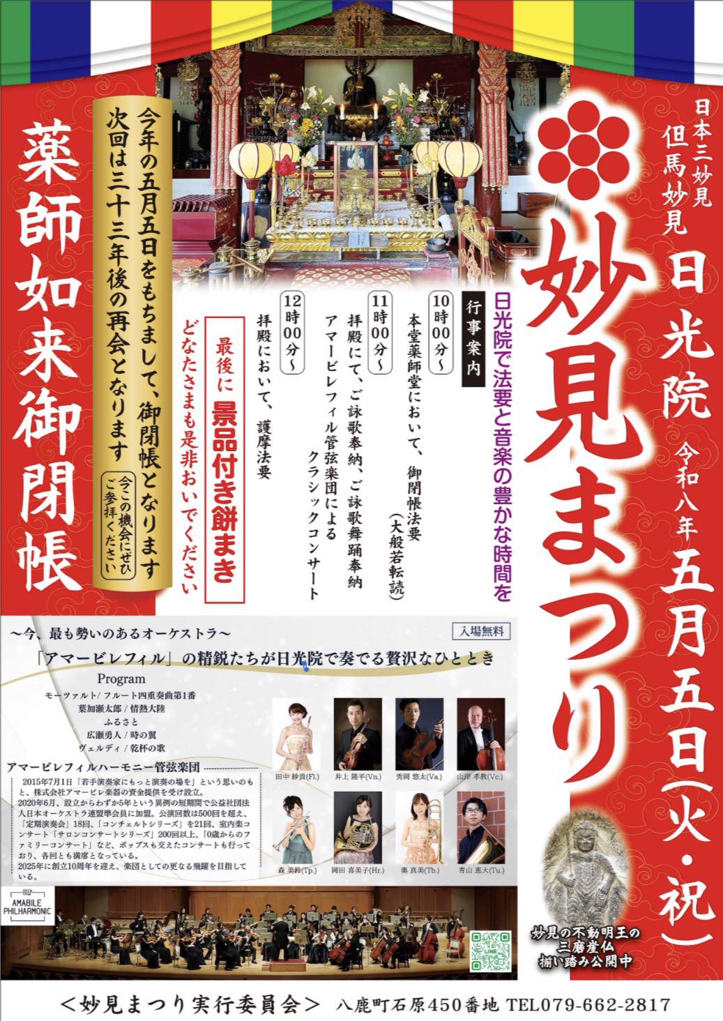 本年も日光院にて「妙見まつり」を執り行います。今回のまつりは、33年という長い年月、私たちを見守ってくださった「薬師如来」様が再び扉を閉じる…